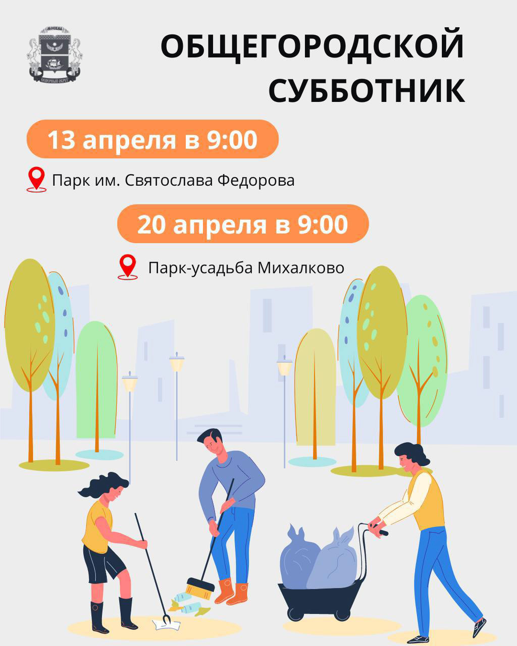 - 13 апреля в 9.00 приглашаем вас в парк им. Святослава Федорова, чтобы вместе привести его в порядок.